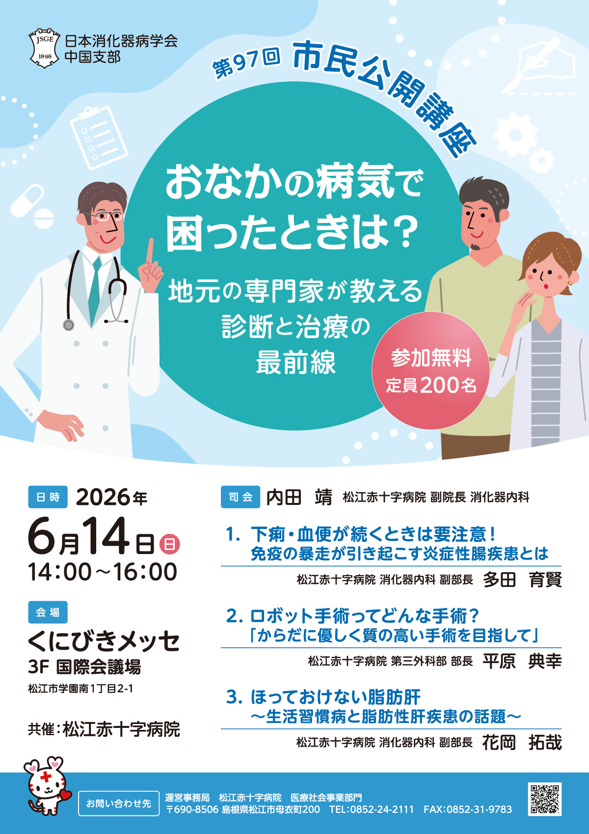 | 内容 | 司会:内田 靖(松江赤十字病院 副院長 消化器内科) |